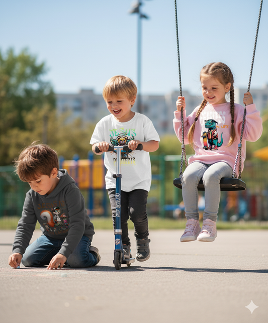 Entdecke unsere Kids Collection: Lössige Kleidung mit Herz und einer positiven Botschaft, gemacht für die Abenteuer deiner Kinder.